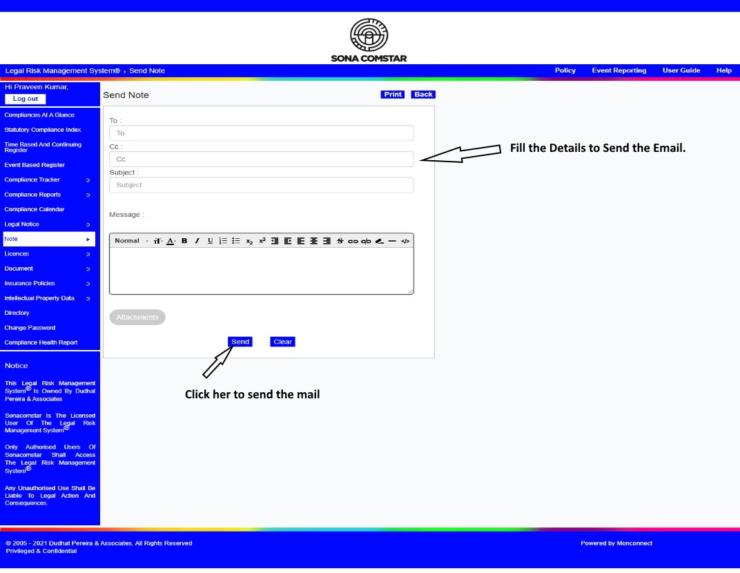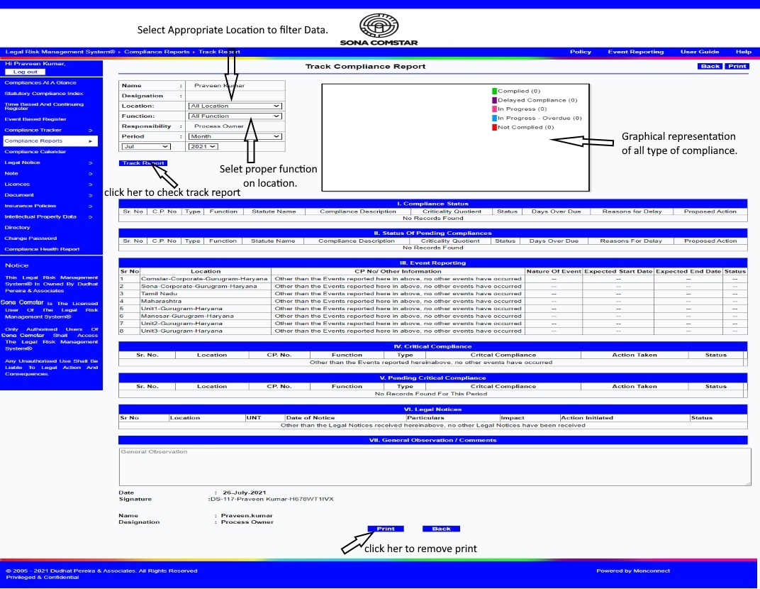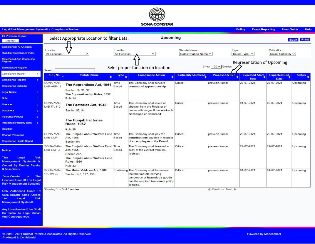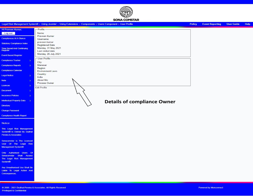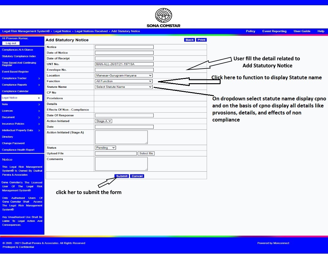 This Legal Risk Management System® is a proprietary work of Dudhat Pereira & Associates. No part of this Legal Risk Management System® may be reproduced or copied in any form or by any means (graphic, electronic or mechanical including but not limited to printing, photocopying, recording, taping or information retrieval system) or reproduced on any disc, tape, perforated media or other information storage device etc without prior written permission of Dudhat Pereira & Associates. Breach of this condition is liable for legal action.