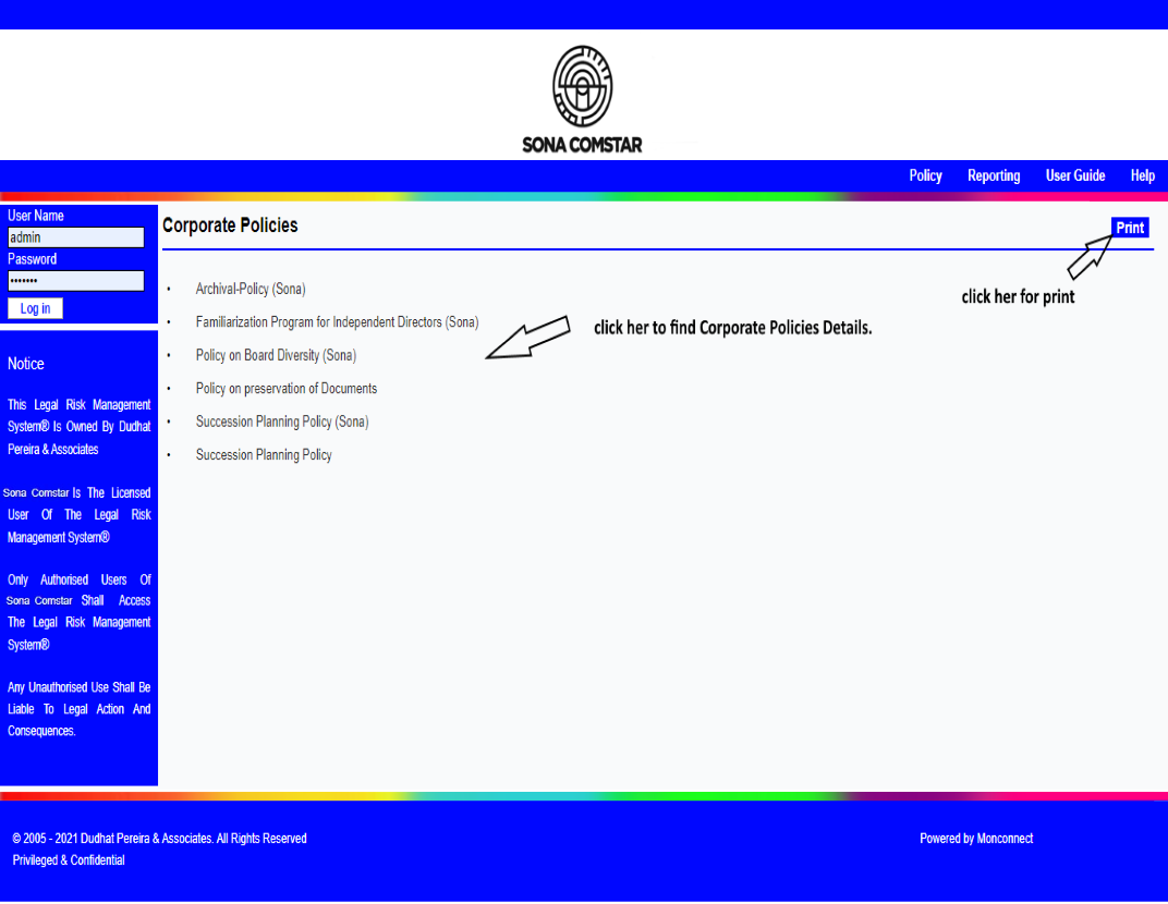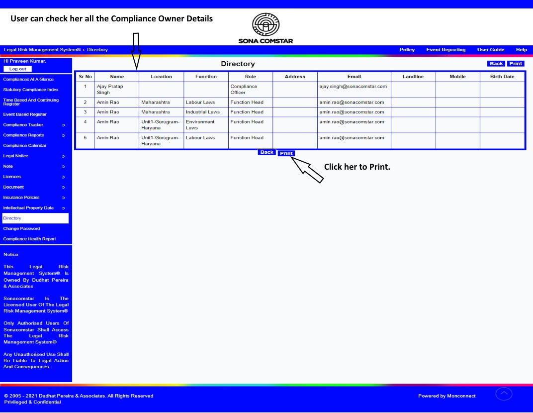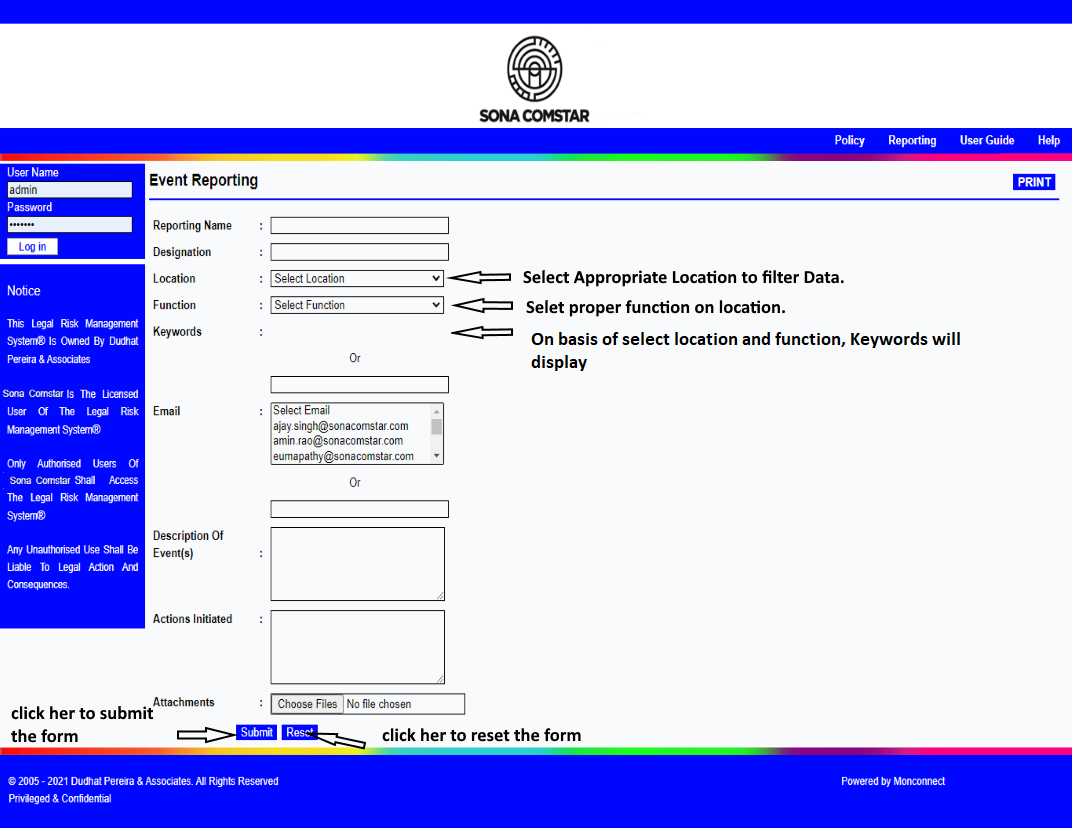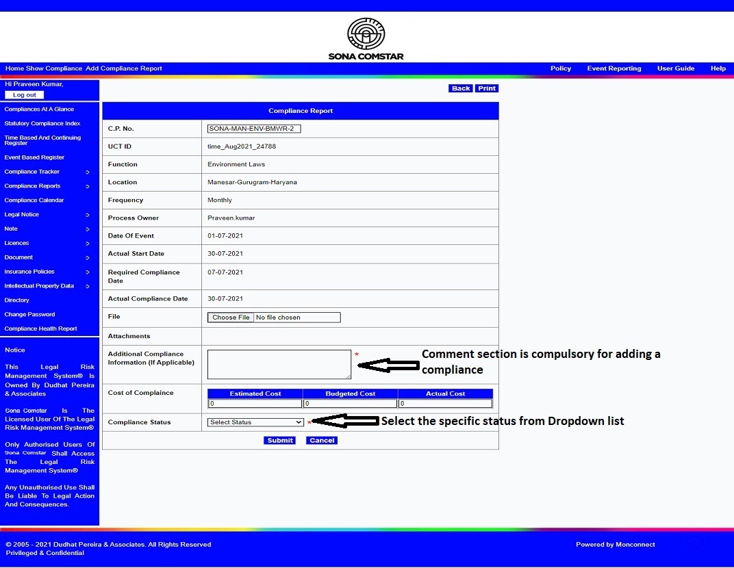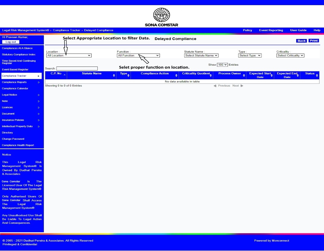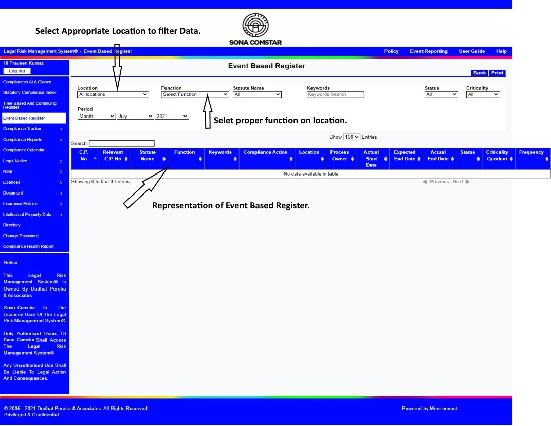 This Legal Risk Management System® is a proprietary work of Dudhat Pereira & Associates. No part of this Legal Risk Management System® may be reproduced or copied in any form or by any means (graphic, electronic or mechanical including but not limited to printing, photocopying, recording, taping or information retrieval system) or reproduced on any disc, tape, perforated media or other information storage device etc without prior written permission of Dudhat Pereira & Associates. Breach of this condition is liable for legal action.