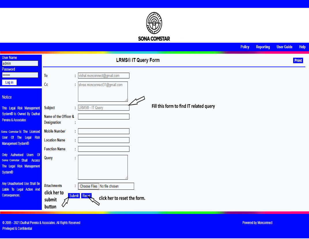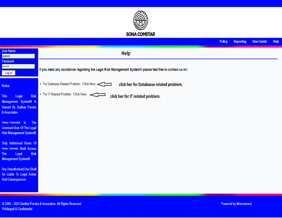 If you need any assistance regarding the Legal Risk Management System® please feel free to contact us on: